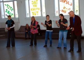 Am 6. April 2014 veranstalteten die Fun Tappers zum ersten Mal einen Tag der offenen Tür. Den ganzen Nachmittag lang konnten Interessierte in der Welschneureuter Straße 36 vorbeikommen, sich die Trainingsräume und Requisitenlager anschauen, unverbindlich informieren, selbst mal Stepschuhe anziehen und ein paar Stepschritte wagen, an Mini-Workshops teilnehmen, kleine Vorführungen begutachten oder einfach die Atmosphäre erkunden. Es war ein schöner, lauter Tag voller Bewegung, Rhythmus und Musik.